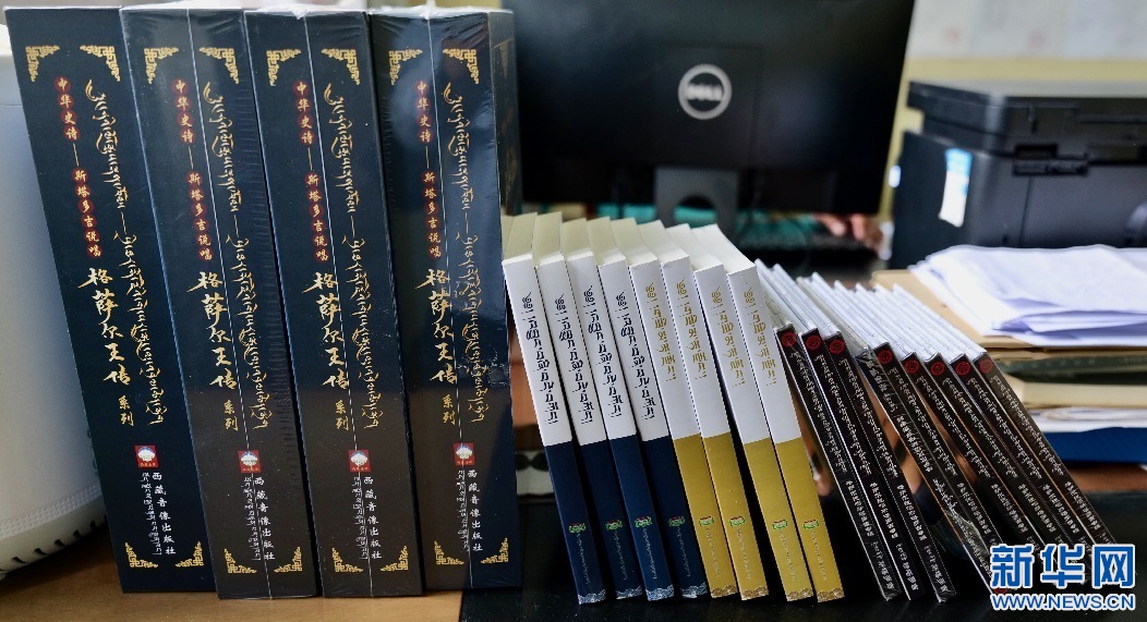 2022年5月30日,圖為(wei) 已出版的斯塔多吉說唱的《格薩爾王傳(chuan) 》係列。新華網 柑丹鴦琦 攝