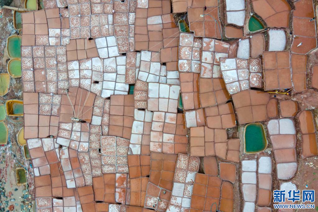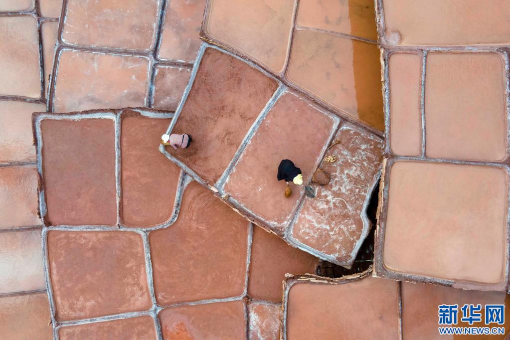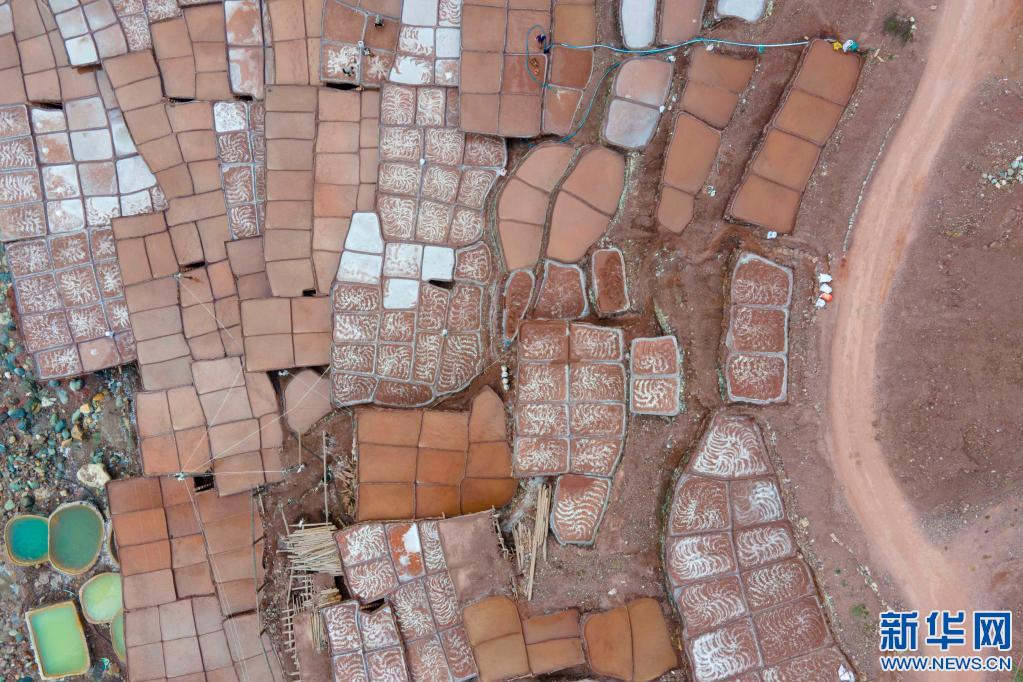 加達村村民在古鹽田裏勞作(無人機照片,5月26日攝)。新華社記者 周荻瀟 攝