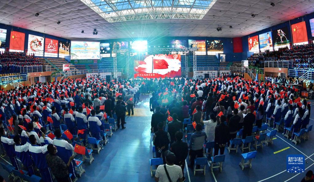 山南市第二高級中學學生在體(ti) 育館觀看中華詩文朗誦會(hui) (6月3日攝)。新華社記者 劉洲鵬 攝