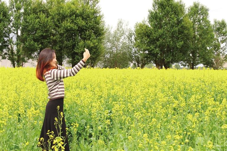 一到達孜區,便可看到公路兩(liang) 邊都是油菜花。記者來到塔傑鄉(xiang) 巴嘎雪村的油菜種植地,頓時被眼前的景色吸引,這裏層層疊疊的油菜花海黃綠相映,在陽光的照耀下絢麗(li) 奪目,將大地渲染成“金黃海洋”,微風吹拂下,黃花綠葉的油菜花搖曳著曼妙身姿,清新婉約,當你置身油菜花海中,花香撲麵而來,讓人心曠神怡。
