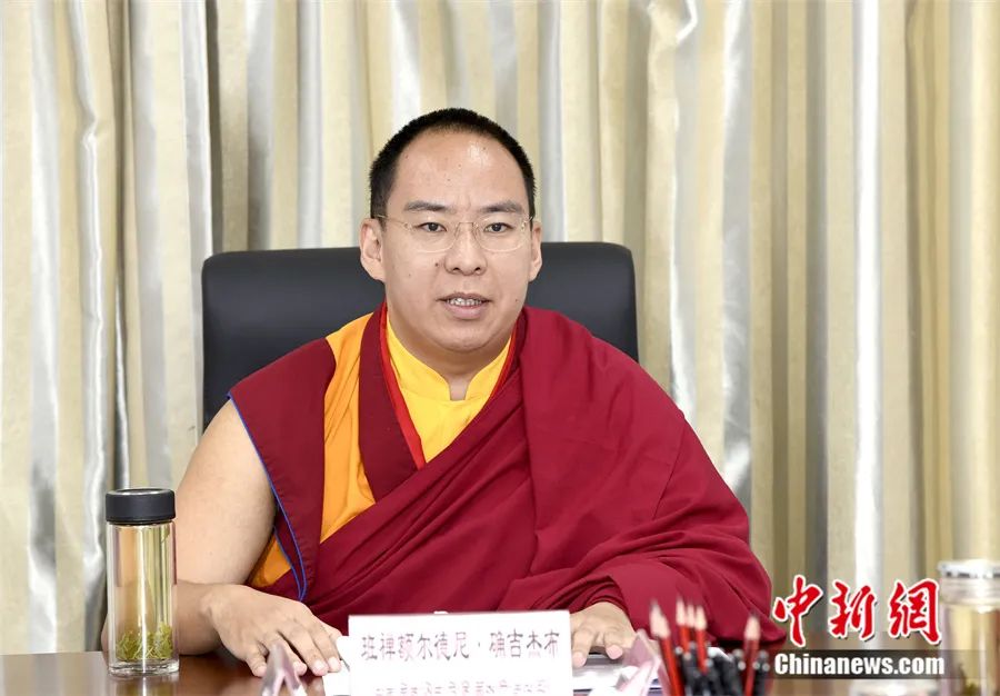 6月2日,班禪與(yu) 藏傳(chuan) 佛教格魯派高僧座談中發言。中新社發 李林 攝