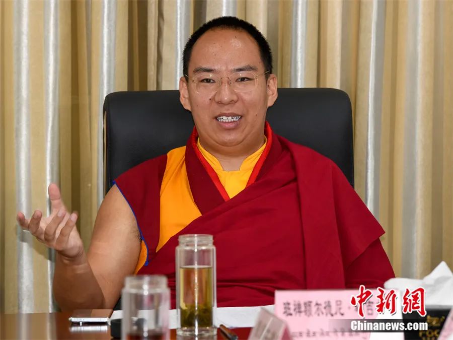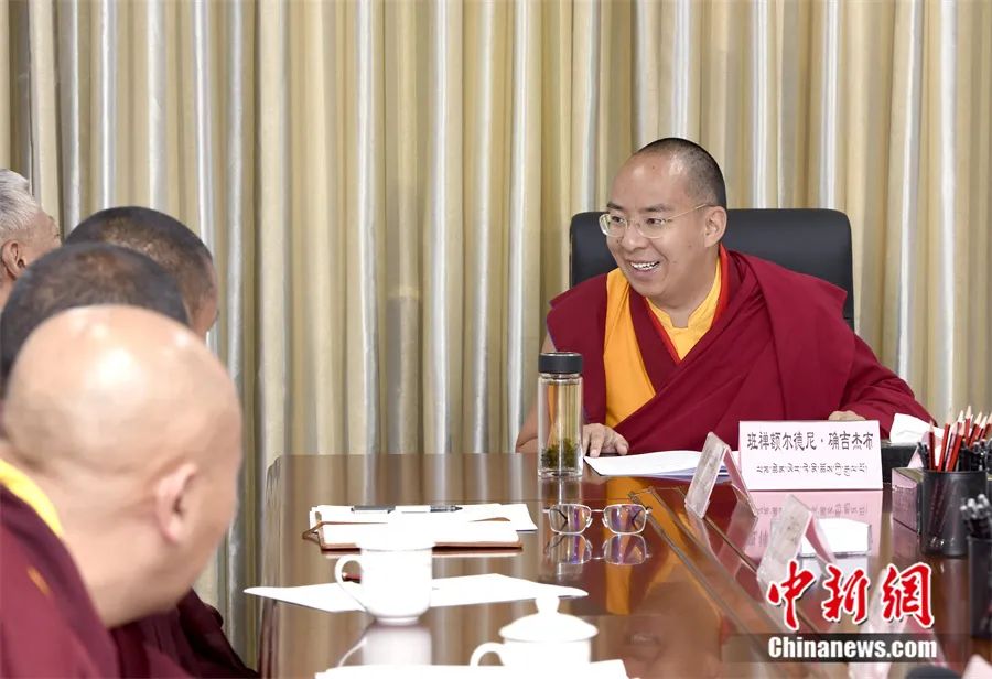 6月10日,班禪與(yu) 西藏佛學院經師座談中發言交流。中新社發 李林 攝