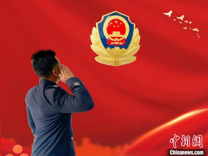 圖為(wei) 尼瑪紮西向警徽敬禮。 日喀則市公安局禁毒支隊供圖