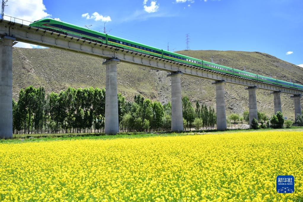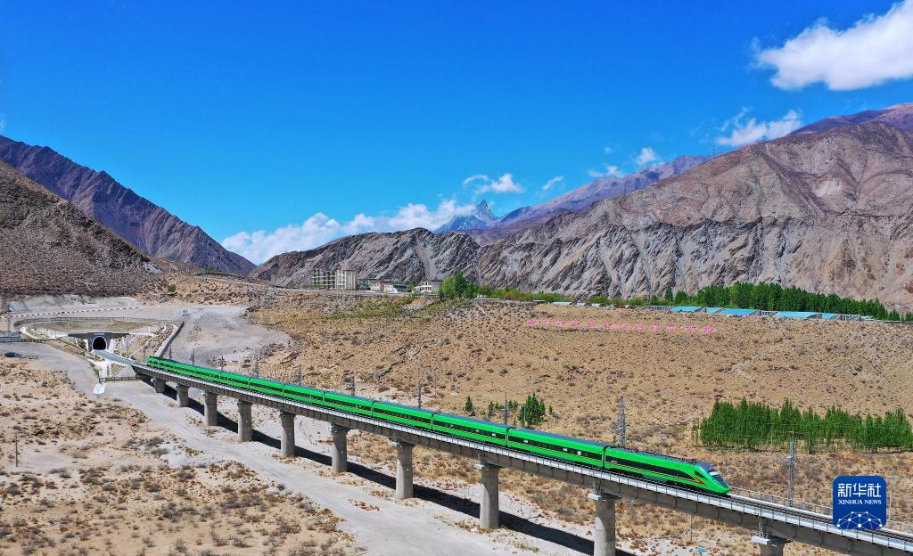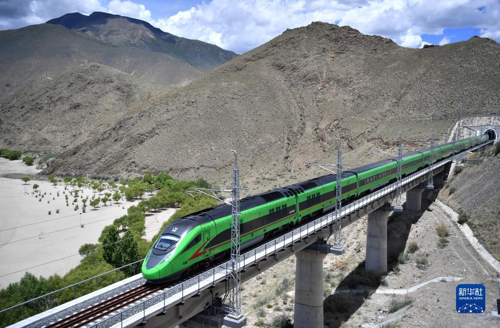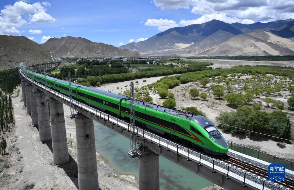 6月22日,複興(xing) 號列車行駛在西藏山南境內(nei) 。新華社記者 覺果 攝