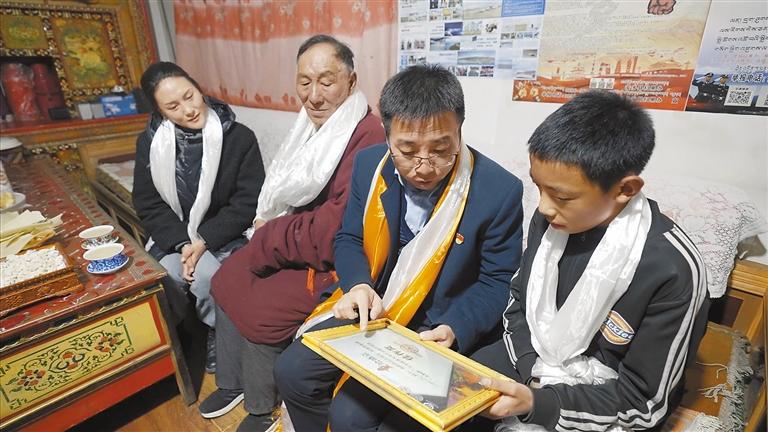 沈陽市第九批援藏工作組副領隊、安多縣常務副縣長裴德本來到資助的貧困中學生古紮多吉家中家訪。