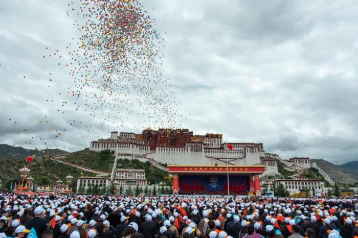 2021 年8 月19 日,慶祝西藏和平解放70 周年大會(hui) 在拉薩布達拉宮廣場舉(ju) 行。 本報記者 江飛波 攝