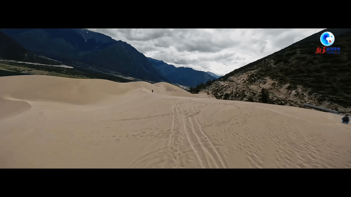 飛翔遠眺,夏季的雅魯藏布江河穀綠意蔥蔥,生機盎然。江畔的沙丘、綠洲和周圍的青山和諧共處,相映成趣。