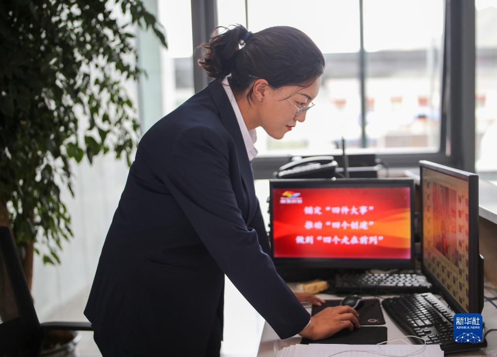 “格桑花開”大學生就業(ye) 創業(ye) 特訓營學員、西藏藏建科技股份有限公司職員旦珍在工作中(2022年6月24日攝)。新華社記者 薑帆 攝