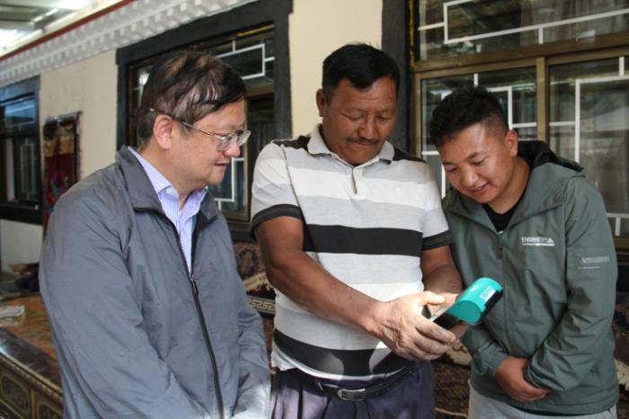 2021年3月,林慶在阿裏邊境一線入戶了解三農(nong) 金融服務點情況。中國農(nong) 業(ye) 銀行西藏自治區分行供圖