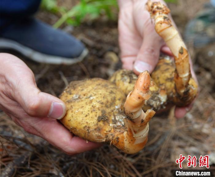 圖為(wei) 工作人員展示藏天麻種植基地撫育的天麻。 冉文娟 攝