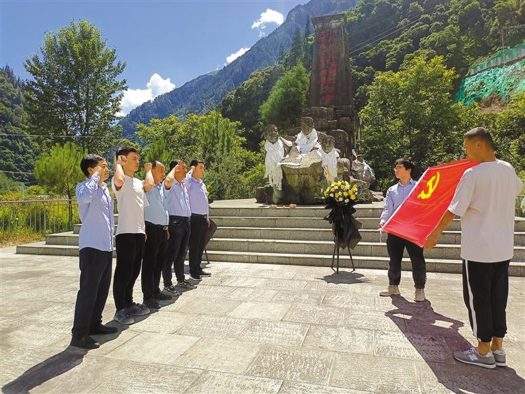 7月1日,中交二公局西藏項目黨(dang) 支部組織黨(dang) 員、預備黨(dang) 員、入黨(dang) 積極分子,前往波密紅樓、“川藏線上十英雄”紀念碑等地開展慶祝建黨(dang) 101周年主題黨(dang) 日活動,引導黨(dang) 員幹部自覺錘煉黨(dang) 性,增強服務意識、感悟初心、傳(chuan) 承使命。 圖為(wei) 該支部黨(dang) 員在“川藏線上十英雄”紀念碑前重溫入黨(dang) 誓詞。林芝采訪組 攝