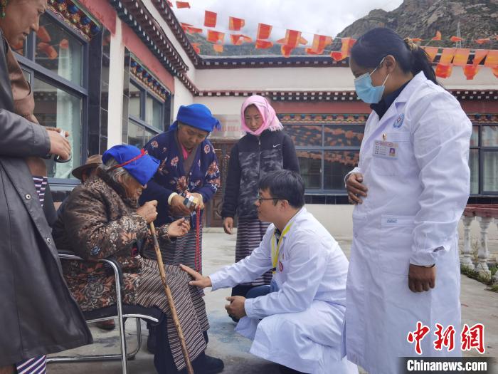 張韡為(wei) 藏族民眾(zhong) 看病。受訪者供圖