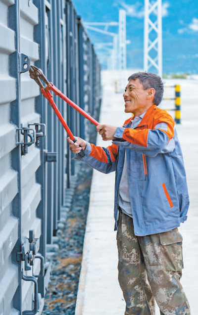 依托鐵路發展貨運,不僅(jin) 降低了運輸成本,還讓一些人找到了努力的方向。將貨物裝上叉車後,裝卸工尼瑪調轉車頭,再把貨物整齊地碼放在一側(ce) 的卡車上,操作行雲(yun) 流水,相當熟練。平措豎起了大拇指:“看到旁邊的大吊車沒有?尼瑪正準備考證。要是考過了,工資又能長不少!”