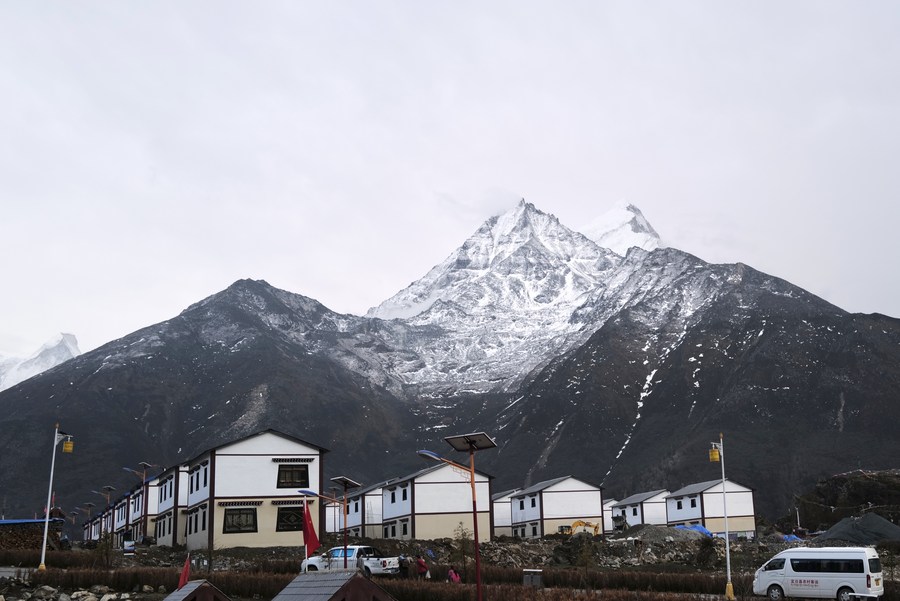 這是雪山下絨轄鄉(xiang) 的藏式新居(4月10日攝)。新華社記者 劉潁 攝