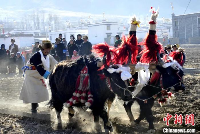 拉薩堆龍德慶區德慶村村民舉(ju) 行傳(chuan) 統春耕儀(yi) 式。中新社發 李林 攝