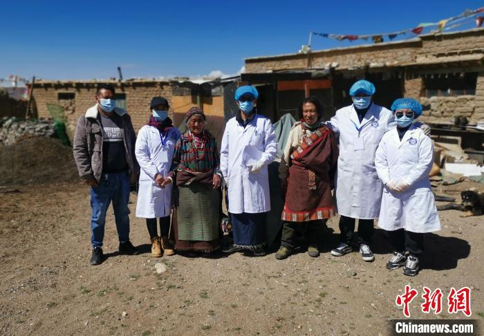圖為(wei) 醫護人員與(yu) 基層牧民合影。普蘭(lan) 縣人民醫院供圖