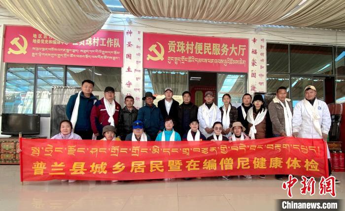 圖為(wei) 醫護人員與(yu) 基層村幹部合影。普蘭(lan) 縣人民醫院供圖