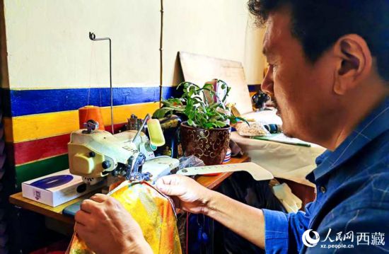 米瑪格列正在縫製藏裝。人民網 李海霞攝