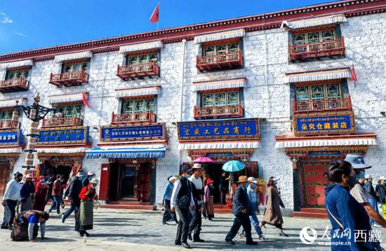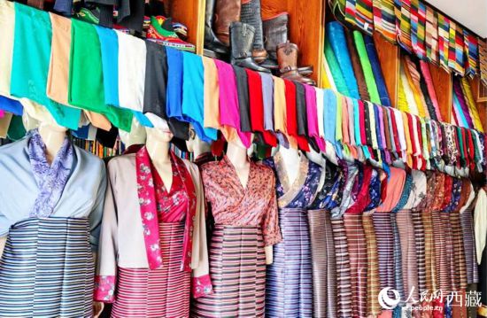 環繞拉薩八廓古城,開滿了藏裝店。人民網 李海霞攝