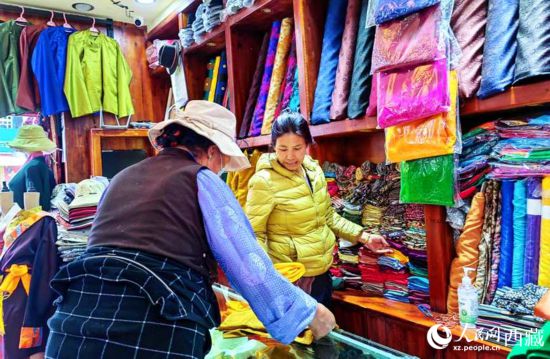 進入旅遊旺季後,來自天南地北的遊客到拉薩八廓古城賞民俗品文化,位於(yu) 八廓街上的朵究倉(cang) 藏裝店也因此成了必備網紅打卡店。“我在新聞裏看到總書(shu) 記來過你們(men) 店,所以專(zhuan) 門過來的,想買(mai) 一身藏裝作紀念,老板你幫我看看哪件合適?”來自東(dong) 北的吳女士邊挑選衣服邊說。