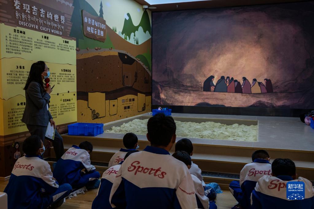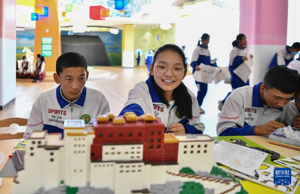 7月8日,學生代表在兒(er) 童體(ti) 驗館參與(yu) 互動體(ti) 驗項目。新華社記者 晉美多吉 攝