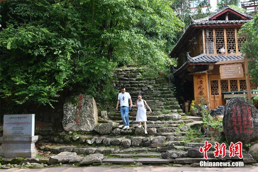 2022年6月,雲(yun) 南省普洱市寧洱縣那柯裏村,遊客走在茶馬古道遺址上體(ti) 驗。中新社記者 劉冉陽 攝