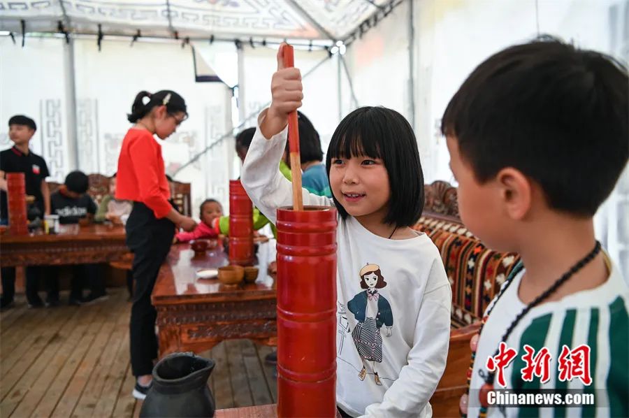 2019年7月,來自江蘇蘇州的小遊客們(men) 在拉薩體(ti) 驗酥油茶製作。中新社記者 何蓬磊 攝