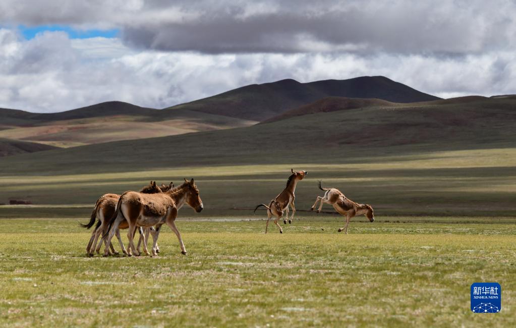 在雙湖縣境內(nei) 拍攝的藏野驢(7月16日攝)。新華社記者 晉美多吉 攝