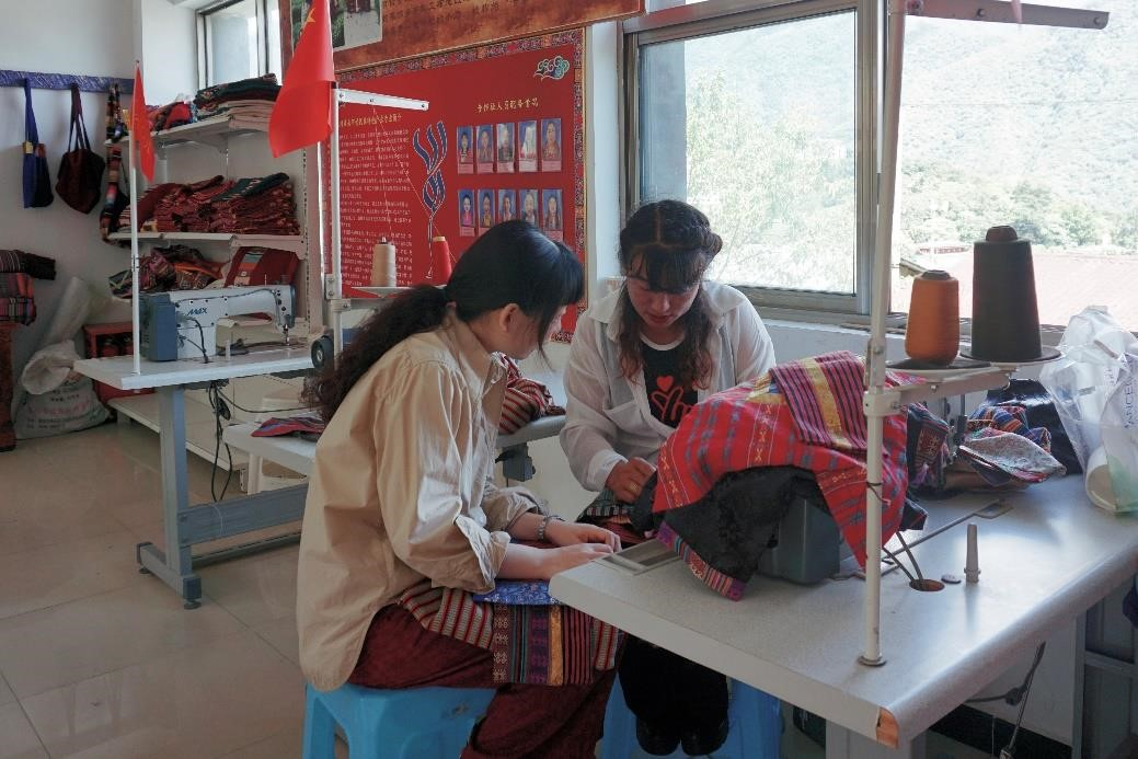 支隊成員向當地人學習(xi) 民族服裝製作工藝