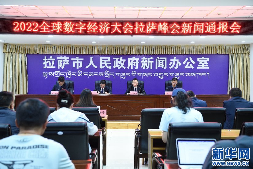 2022全球數字經濟大會(hui) 拉薩峰會(hui) 新聞通報會(hui) 現場(7月21日攝)。新華網 旦增努布攝