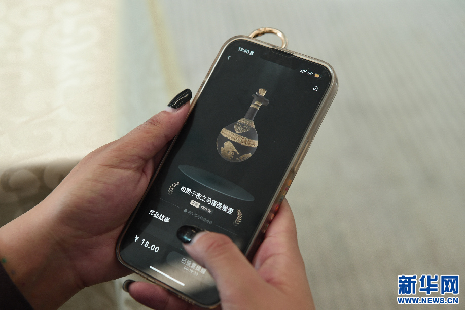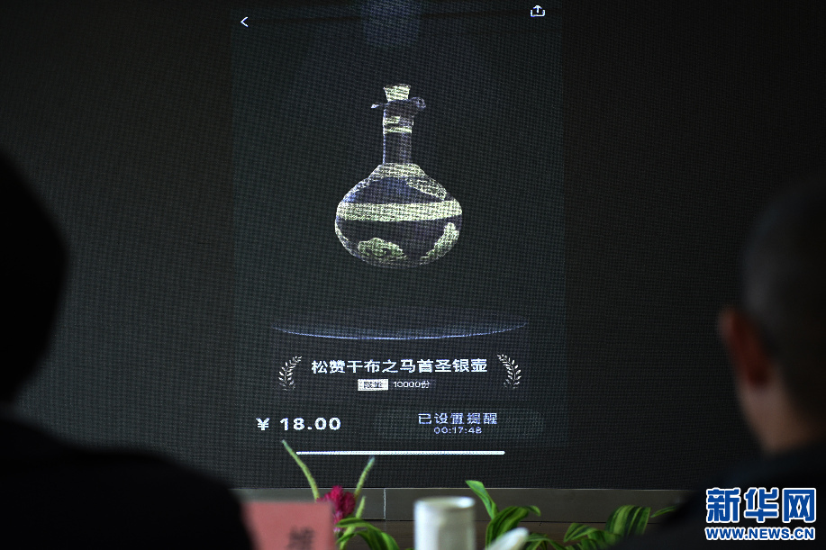 7月21日,用戶在手機端預約搶購西藏首個(ge) 數字藏品《鬆讚幹布之馬首聖銀壺》。新華網旦增努布 攝