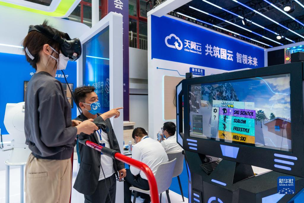 參觀者在會(hui) 場體(ti) 驗VR遊戲。新華社記者周荻瀟 攝