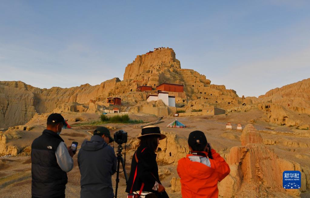 8月3日,遊客在西藏劄達縣拍攝古格王國遺址。新華社記者 張汝鋒 攝