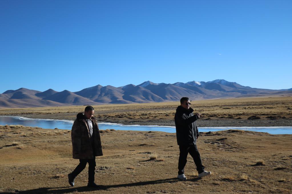 王軍(jun) 強(右)在申紮縣巴紮鄉(xiang) 查藏藏布巡河。(圖片由申紮縣委宣傳(chuan) 部提供)