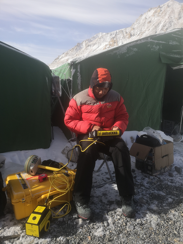 楊威在珠峰大本營檢查調試雷達設備