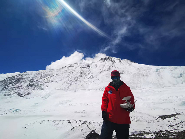 高壇光手持無人機(遙控器)於(yu) 珠穆朗瑪峰上留影