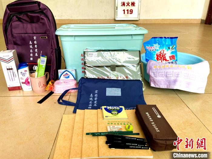 資料圖為(wei) 京藏宏誌班學生發放的學習(xi) 、生活用品。北京援藏供圖