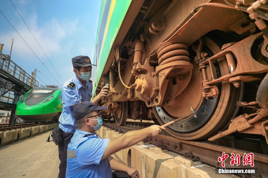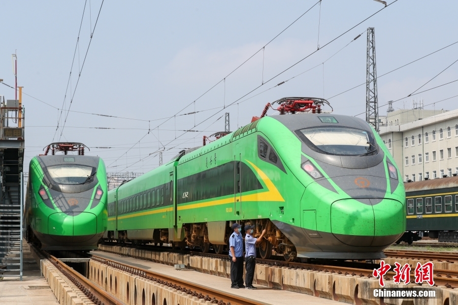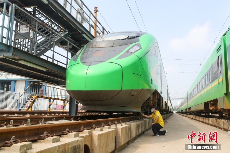 8月17日,北京車輛段西庫檢車間,檢修人員剛剛完成一列時速160公裏動力集中型複興(xing) 號動車組(俗稱“綠巨人”)的檢修工作。這裏是京津冀地區唯一的“綠巨人”檢修維修基地,肩負著18列共計261節車輛的檢修任務。隨著暑運逐漸迎來返校返程高峰,檢修人員也在加班加點為(wei) 列車做好體(ti) 檢工作,確保運行安全。 中新社記者 賈天勇 攝