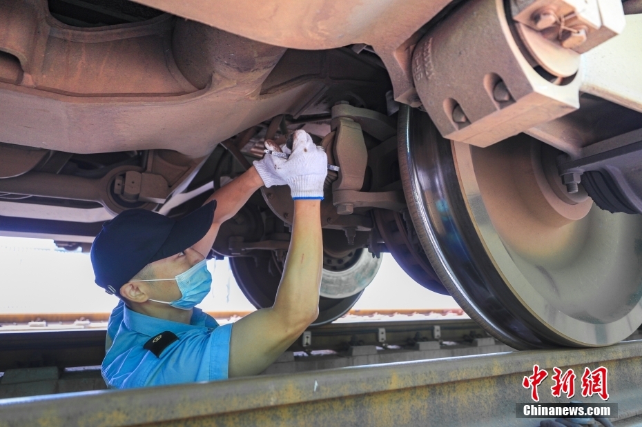 8月17日,北京車輛段北京西庫檢車間內(nei) ,北京電務段檢修人員對時速160公裏動力集中型複興(xing) 號動車組(俗稱“綠巨人”)的車下線圈和電子標簽進行檢查。這裏是京津冀地區唯一的“綠巨人”檢修維修基地,肩負著18列共計261節車輛的檢修任務。隨著暑運逐漸迎來返校返程高峰,檢修人員也在加班加點為(wei) 列車做好體(ti) 檢工作,確保運行安全。 中新社記者 賈天勇 攝