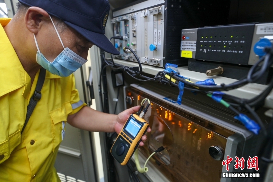 8月17日,北京車輛段北京西庫檢車間內(nei) ,北京電務段檢修人員正在檢查時速160公裏動力集中型複興(xing) 號動車組(俗稱“綠巨人”)的車上壓力傳(chuan) 感器。這裏是京津冀地區唯一的“綠巨人”檢修維修基地,肩負著18列共計261節車輛的檢修任務。隨著暑運逐漸迎來返校返程高峰,檢修人員也在加班加點為(wei) 列車做好體(ti) 檢工作,確保運行安全。 中新社記者 賈天勇 攝