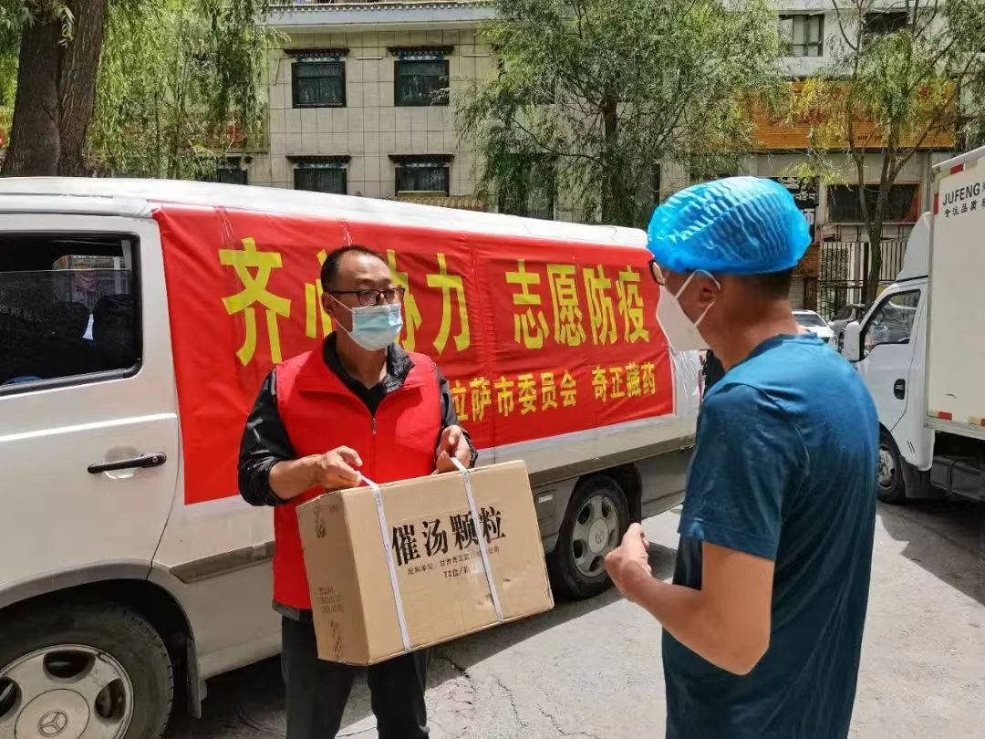 8月9日起,奇正藏藥集團組織捐贈防疫藥品和物資,分別贈送到拉薩市的135個(ge) 核酸檢測點,山南、日喀則、林芝的醫療一線,以及自治區藏醫藥方艙醫療隊。8月14日下午,又奔赴拉薩市24個(ge) 新冠疫情隔離防護點,捐贈抗疫用藥催湯顆粒2萬(wan) 袋、1000人份。兩(liang) 次捐贈價(jia) 值100萬(wan) 元。