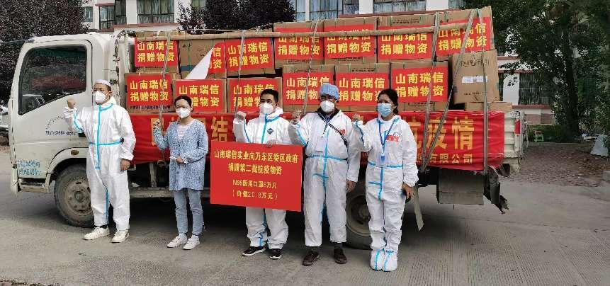 山南瑞信實業(ye) 公司向山南市乃東(dong) 區、桑日縣、紮囊縣、曲鬆縣疫情防控工作人員捐贈價(jia) 值66.18萬(wan) 元的抗疫物資。