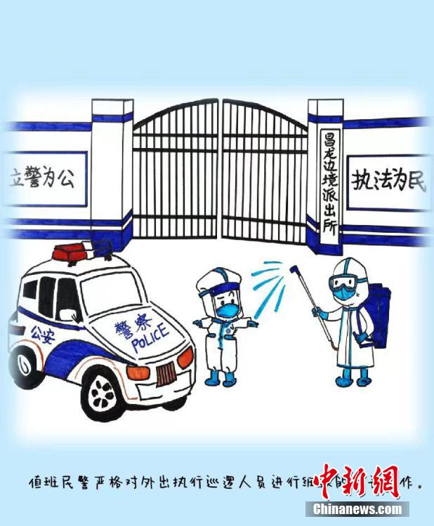 來自四川省宜賓學院的沈文靜是西藏日喀則邊境管理支隊昌龍邊境派出所教導員胡浩的妻子,7月26日來隊探親(qin) ,此後遭遇西藏疫情暴發。在派出所抗疫期間,沈文靜拿起畫筆,將奮戰在抗疫一線的移民管理警察身影描繪記錄下來,用漫畫的方式生動再現西藏移民管理警察的戰“疫”人物群像。沈文靜 繪 龍小鳳 文