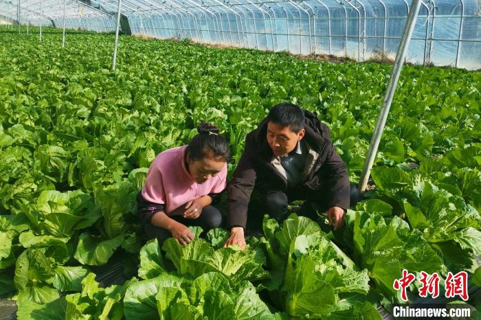 來自山東(dong) 壽光的孟德利(右)在西藏康馬縣蔬菜大棚內(nei) 。 受訪者供圖