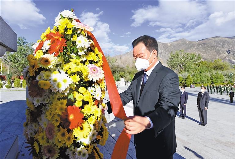 鮮花獻英烈,哀思祭忠魂。在第九個(ge) 烈士紀念日來臨(lin) 之際,9月30日上午,西藏自治區向烈士敬獻花籃儀(yi) 式在拉薩烈士陵園舉(ju) 行,自治區黨(dang) 政軍(jun) 領導同全區各族各界幹部群眾(zhong) 代表一起向人民英雄敬獻花籃,緬懷烈士功績,弘揚革命精神,凝聚奮進力量。