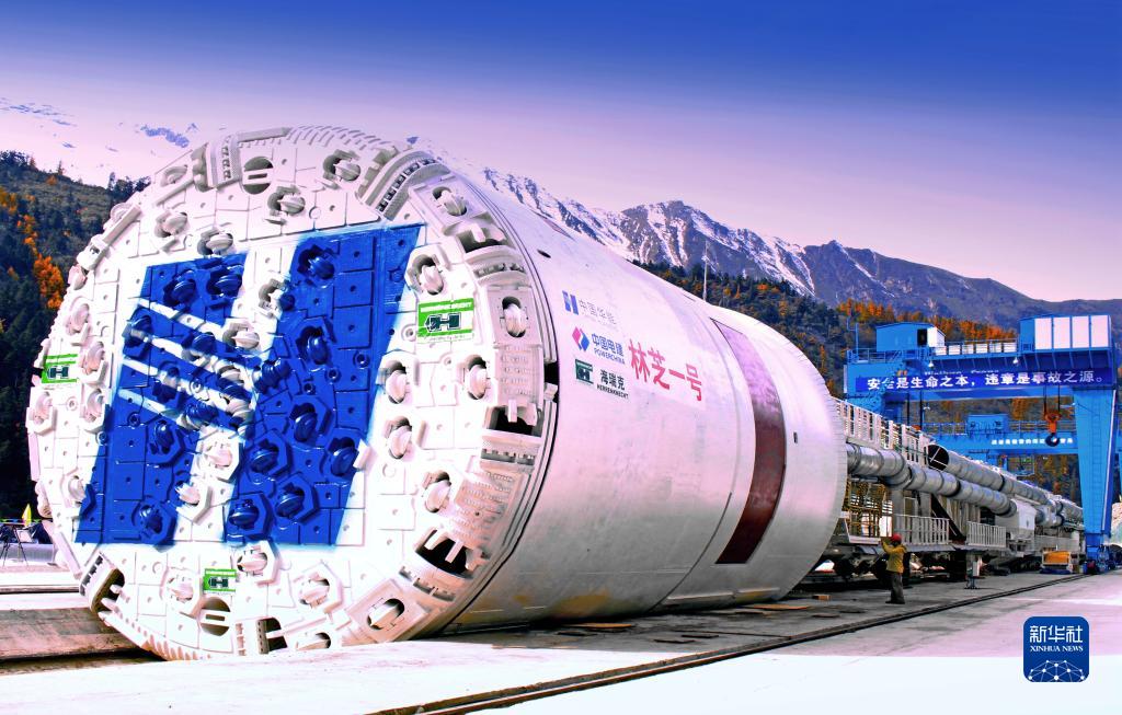 派墨公路多雄拉隧道施工采用的“林芝一號”全斷麵雙護盾硬岩掘進機(TBM)完成組裝並順利進行首次滑行(2015年10月29日攝)。新華社發(董誌雄 攝)