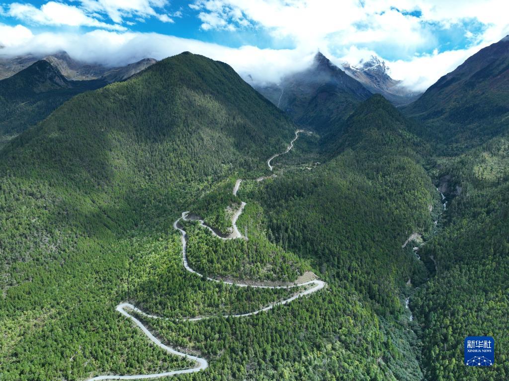 這是2022年9月30日拍攝的派墨公路派鎮起點路段(無人機照片)。新華社發(董誌雄 攝)