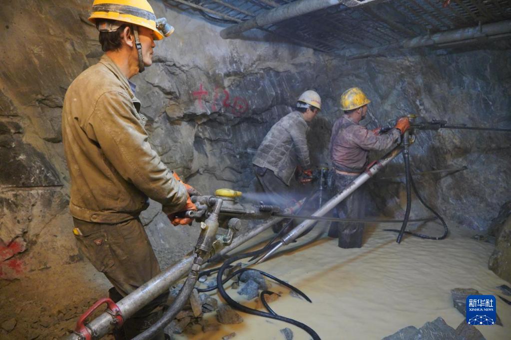 工人在派墨公路老虎嘴隧道掌子麵打鑽作業(ye) (2021年2月9日攝)。新華社發(董誌雄 攝)
