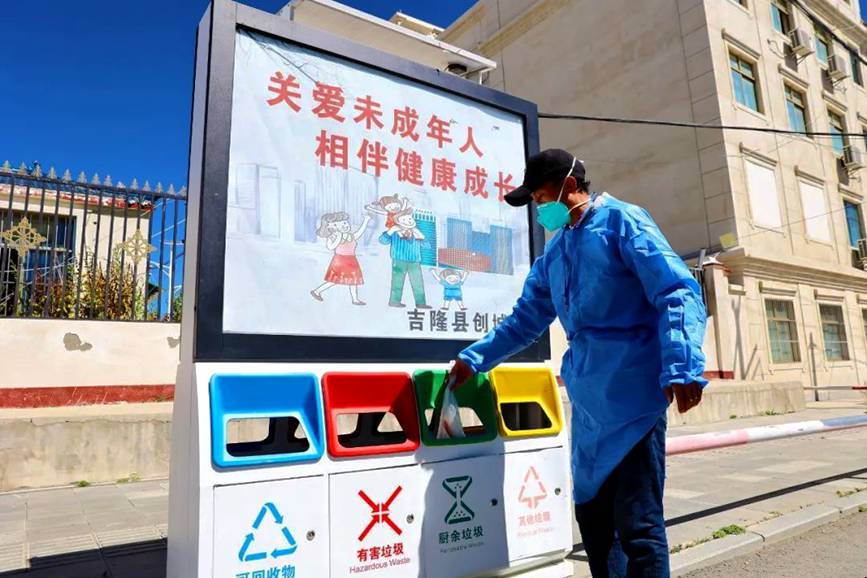 道路旁設立垃圾分類箱,群眾(zhong) 分類投放垃圾。現如今,生活垃圾分類已成為(wei) 新風尚。