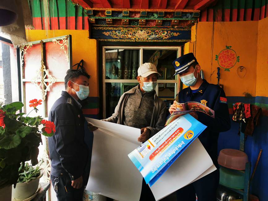 圖為(wei) 日喀則市消防救援支隊聯合轄區民警進村入戶宣傳(chuan) 。